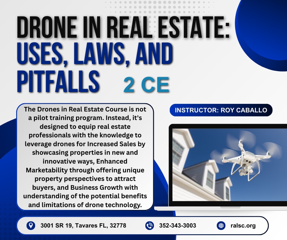 The Drones in Real Estate Course is not a pilot training program. Instead, it's designed to equip real estate professionals with the knowledge to leverage drones for Increased Sales by showcasing properties in new and innovative ways, Enhanced Marketability through offering unique property perspectives to attract buyers, and Business Growth with understanding of the potential benefits and limitations of drone technology. The course also equips real estate professionals with some basic knowledge to avoid legal pitfalls when using drones. By understanding the legal framework, the course helps real estate agents use drones responsibly and avoid potential liability.