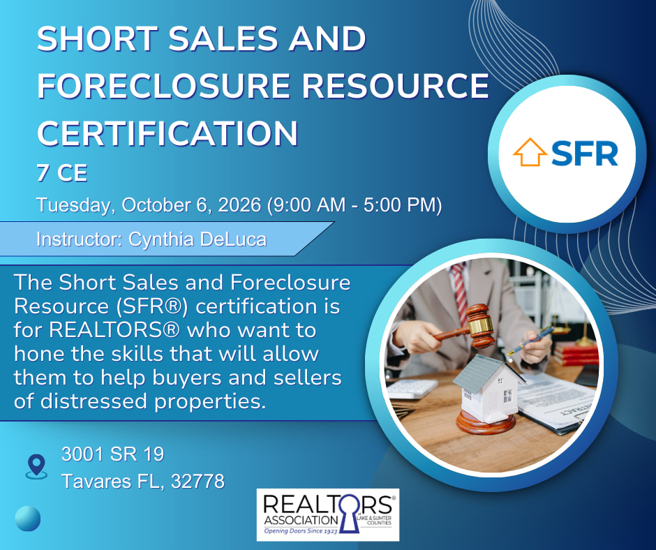 The Short Sales and Foreclosure Resource (SFR®) certification is for REALTORS® who want to hone the skills that will allow them to help buyers and sellers of distressed properties.