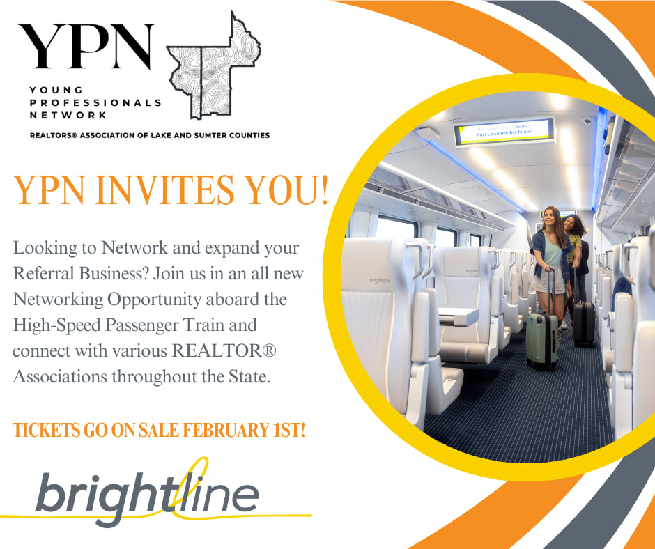 Are you looking to Network and expand your Referral Business? Join REALTORS Association of Lake and Sumter Counties YPN in an all-new Networking Opportunity aboard the High-Speed Passenger Train and connect with various REALTOR® Associations throughout the State.