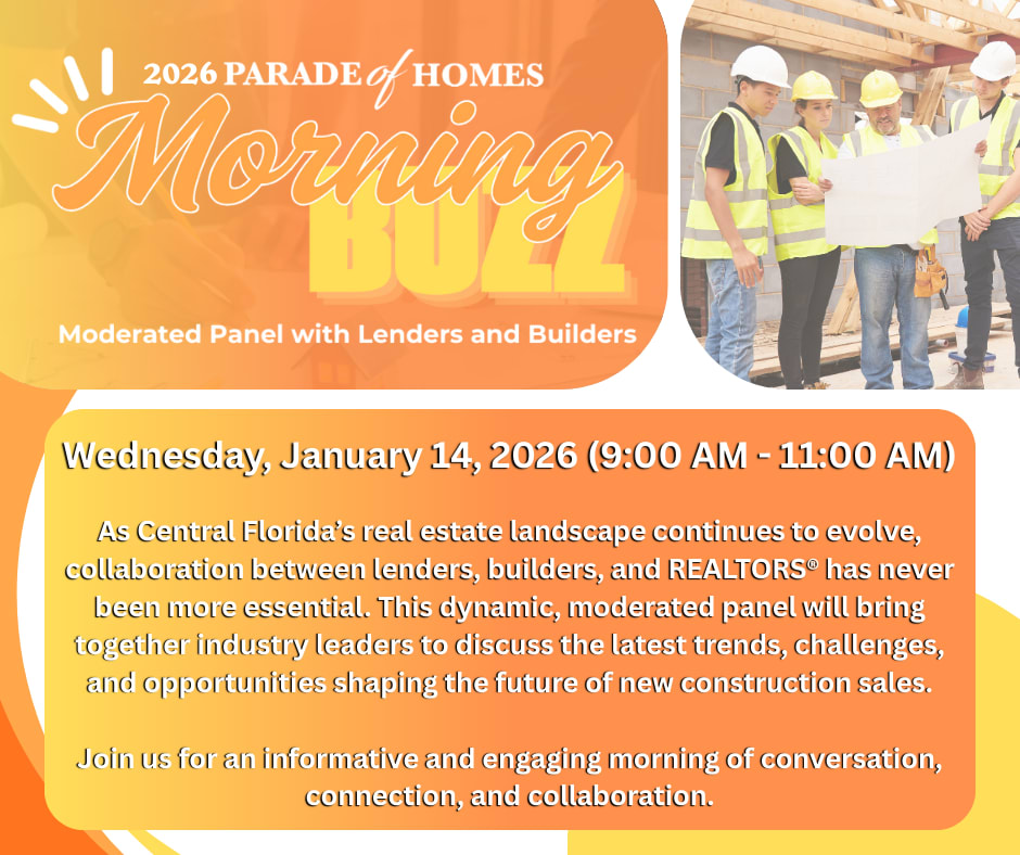 As Central Florida’s real estate landscape continues to evolve, collaboration between lenders, builders, and REALTORS® has never been more essential. This dynamic, moderated panel will bring together industry leaders to discuss the latest trends, challenges, and opportunities shaping the future of new construction sales. Key Topics Include: Join us for an informative and engaging morning of conversation, connection, and collaboration.